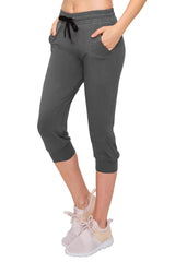 Designed with a sleek skinny fit, these capri joggers feature an elastic waistband with adjustable drawstrings for a customizable fit. The brushed fabric offers an ultra-soft feel inside and out.