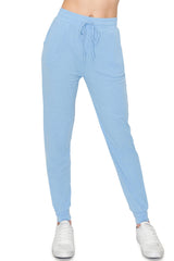 Ribbed Jogger Sweatpants - Rib-Knit Lightweight Soft Stretch Pockets Pants