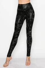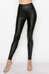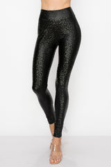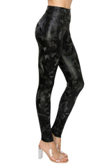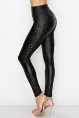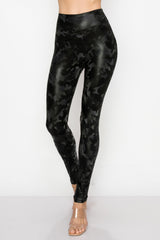 Women's Faux Leather Fashion Leggings - High Waisted Stretch Sexy Pants Print