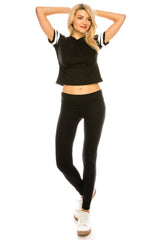 - DESIGN - Cropped length, hooded with drawstrings, short sleeves with contrast stripes.