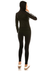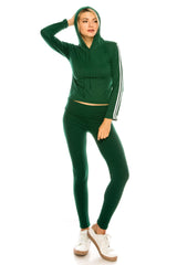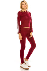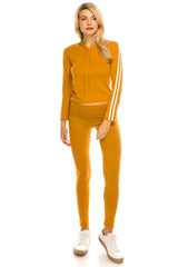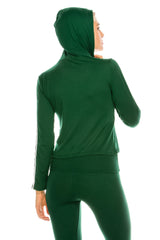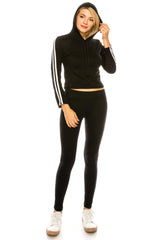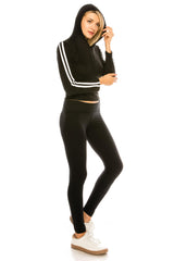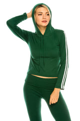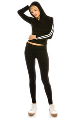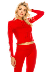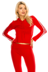 - DESIGN - Cropped length, hooded with drawstrings, long sleeves with contrast stripes.