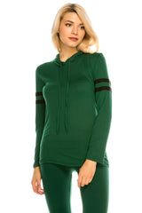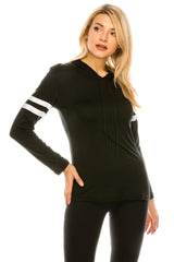 - DESIGN - Hooded with drawstrings, long sleeves with contrast stripes.