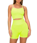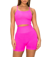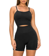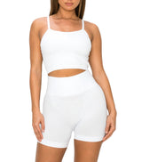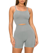 ALWAYS Women's Seamless 2 Piece Set - High Waisted Yoga Bike Workout Shorts and Cami Cropped Tank Top