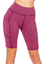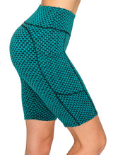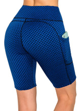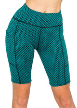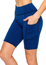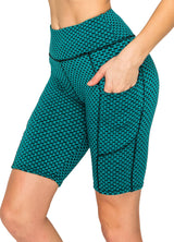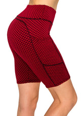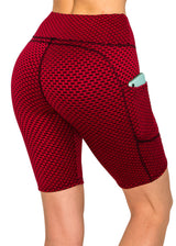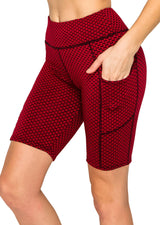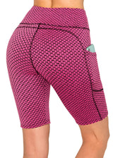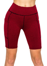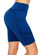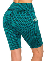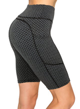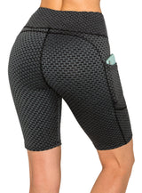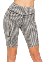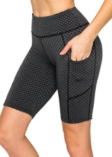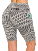 Textured 3D Booty Bike Shorts - High Waist Compression Slimming Butt Lift Checkered Biker Shorts with Pockets
