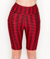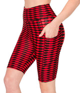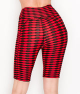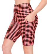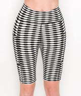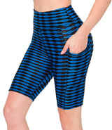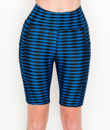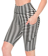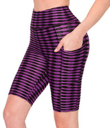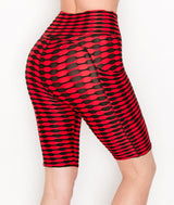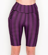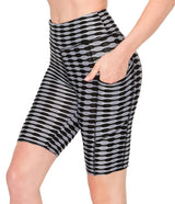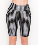 Textured Booty Bike Shorts - Striped High Waist Compression Slimming Butt Lift Bike Shorts with Pockets