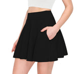 Women's Flared Mini Skater Skirt - High Waist Casual Stretch Basic Pleated Skirt